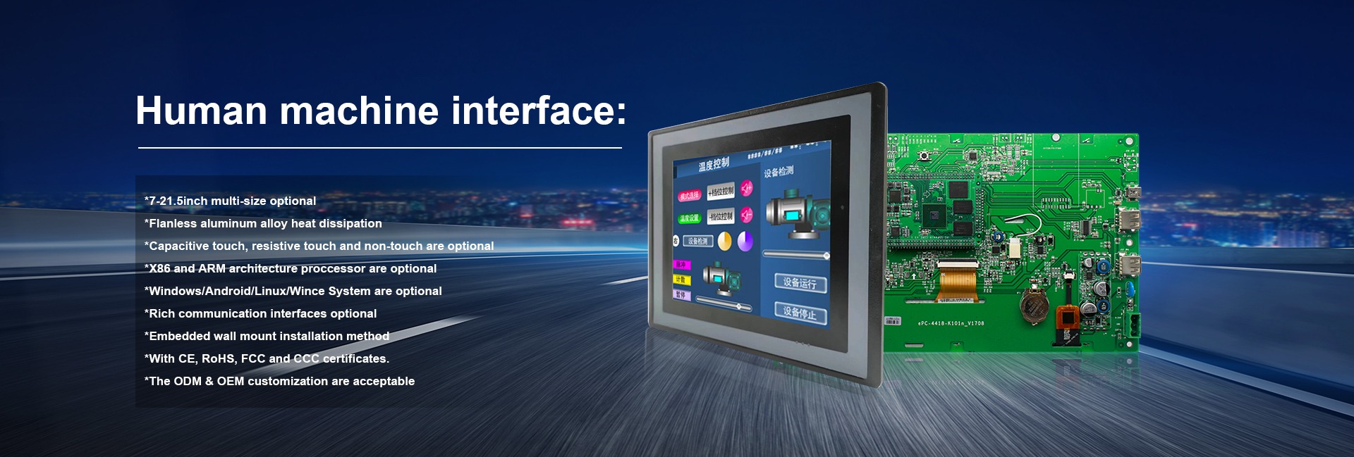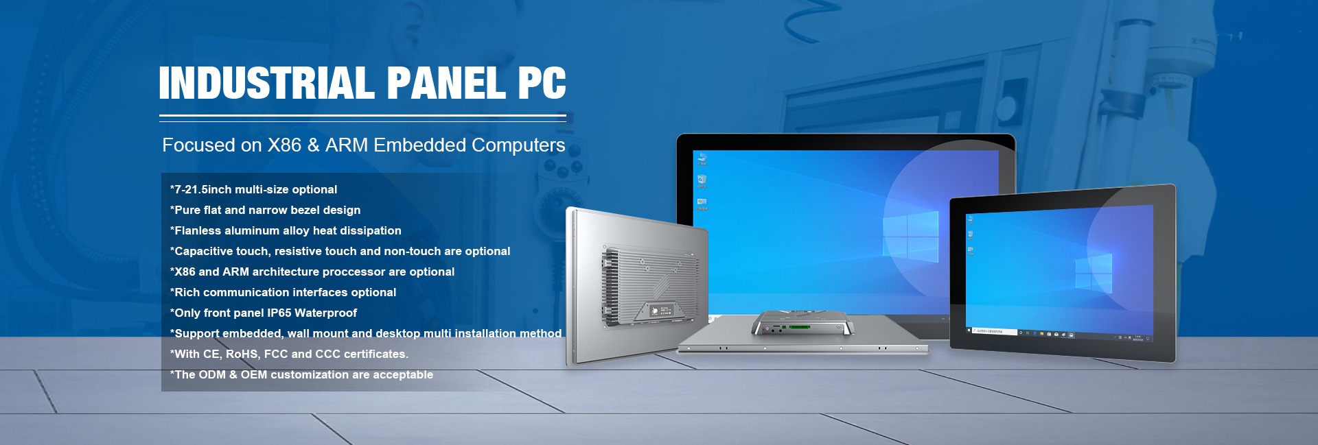 Productos principales:PC de panel industrial, monitor industrial, computadora industrial, interfaz de máquina humana, placa base de computadora industrial